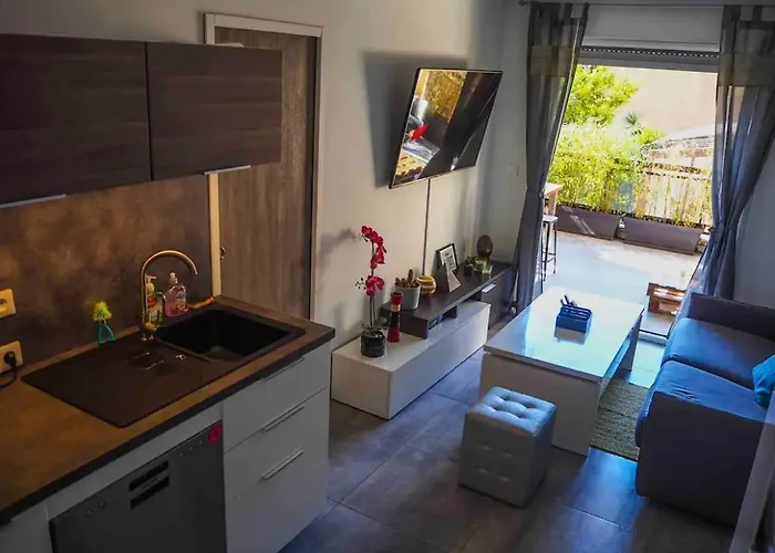 Værelserne har et fladskærms TV med satellitkanaler og klimaanlæg, mens et fuldt udstyret køkken er udstyret med et køleskab, køkkenudstyr og glas. Gæsterne kan slappe af på værelserne, som byder på en terrasse. Appartement Au Coeur Du Lavandou - Plage A 200M ferielejlighed består af 1 soveværelser. Lejligheden består af 1 badeværelser.